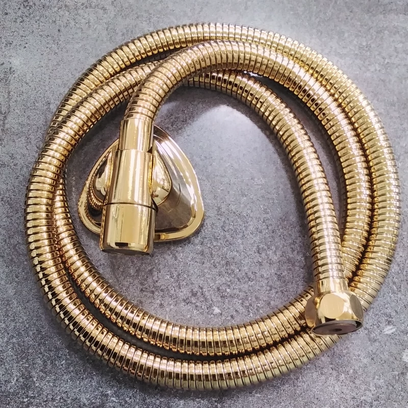 شیلنگ توالت طلایی و طلایی مات،جنس استیل ضد زنگ،دارای پلاتور اس ال سی ضد رسوب،نافی برنجی،سری پلاتور آلیاژ برنج